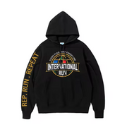 This Premium black pullover features the official International Run globe crest across the chest and "IR Run" icon to the sleeve. Designed for runners, supporters, and global community builders, this hoodie is your go-to for race day warmups and everyday wear.